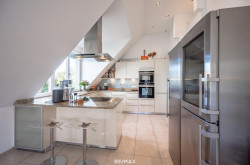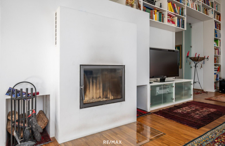Eine überkomplett ausgestattete Küche, elegante Bäder und WCs, vier großzügige Terrassen sowie ein stilvoller Kamin im Wohnbereich setzen exklusive Akzente.