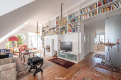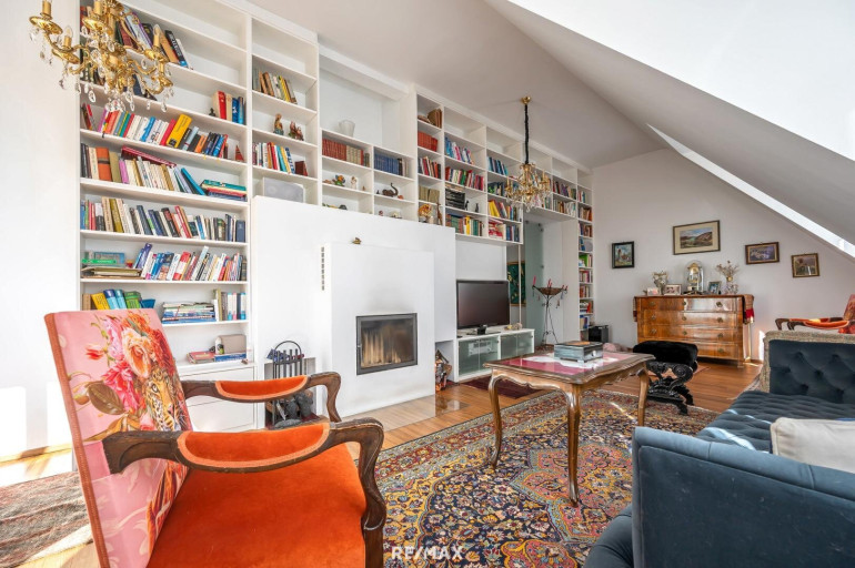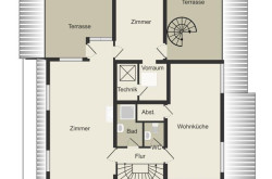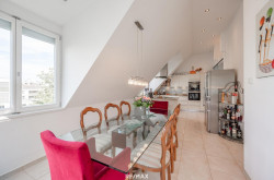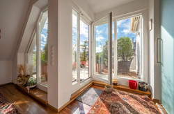 Das Penthouse erstreckt sich über zwei Ebenen eines sehr gepflegten Mehrparteienhauses. Die Raumaufteilung ist durchdacht und großzügig – mit fließenden Übergängen zwischen Wohnen, Arbeiten und Entspannen.