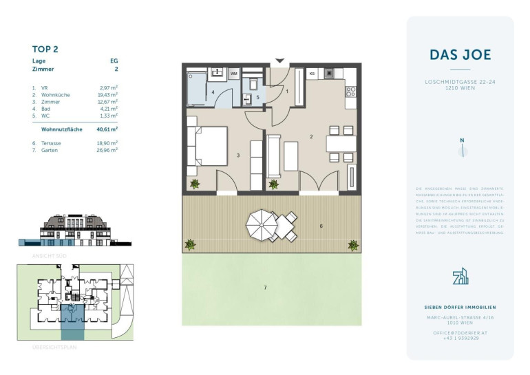 Im Neubauprojekt DAS JOE in 1210 Wien, steht diese moderne 2-Zimmer-Neubauwohnung mit großzügigen Freiflächen zum Verkauf. Auf ca. 40,6 m² Wohnfläche bietet die Wohnung eine funktionale Raumaufteilung und überzeugt durch eine Terrasse mit ca. 18,9 m² sowie einen angeschlossenen Eigengarten mit ca. 27 m².