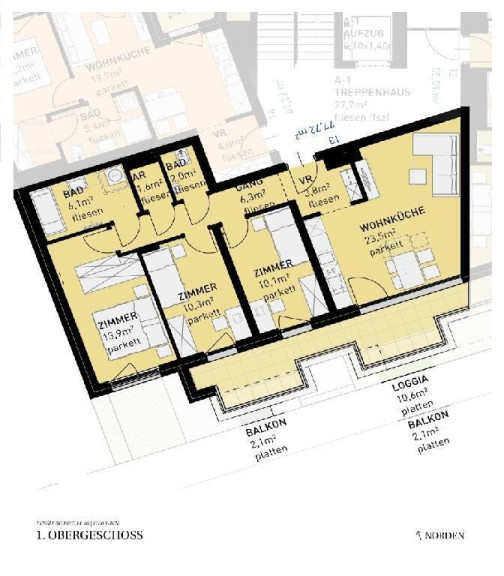 Sollten Sie mehr Platz benötigen, planen wir auch gerne eine größere Wohnung (zB eine 4-Zimmer-Wohnung anstelle von zwei nebeneinander liegenden 2-Zimmer-Wohnungen) für Sie. Fragen Sie einfach bei unserem Vertrieb nach!