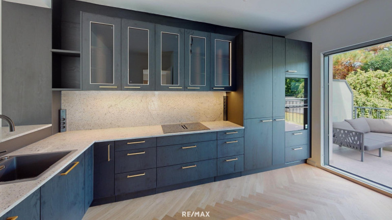 - Hochwertige Küche inkl. Markengeräte und Granitplatte im EG mit Blick in den Garten