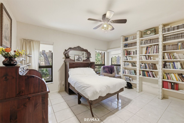 Hohe Decken im Wohnraum, Büro/Den, Schlafzimmer und Bad