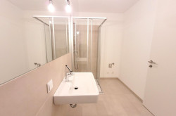 - Bad mit Dusche und WC, modern mit großen Fliesen und schönen Armaturen,