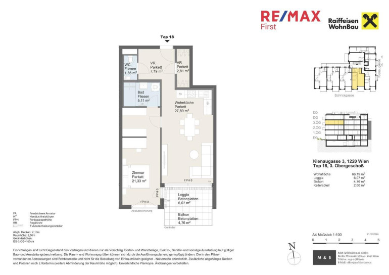 Die Wohnung Top 18 befindet sich in 3. Obergeschoss und bietet auf 66,24 m²: