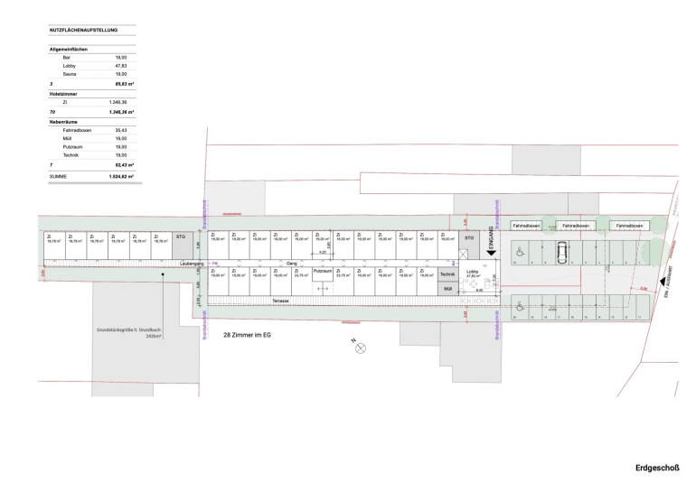 Es gibt 2 Architekturstudien für das Grundstück: eine für Doppelhausbebauung und eine für Hotel. die zur Verfügung gestellt werden können.