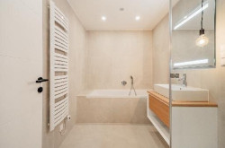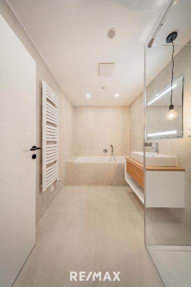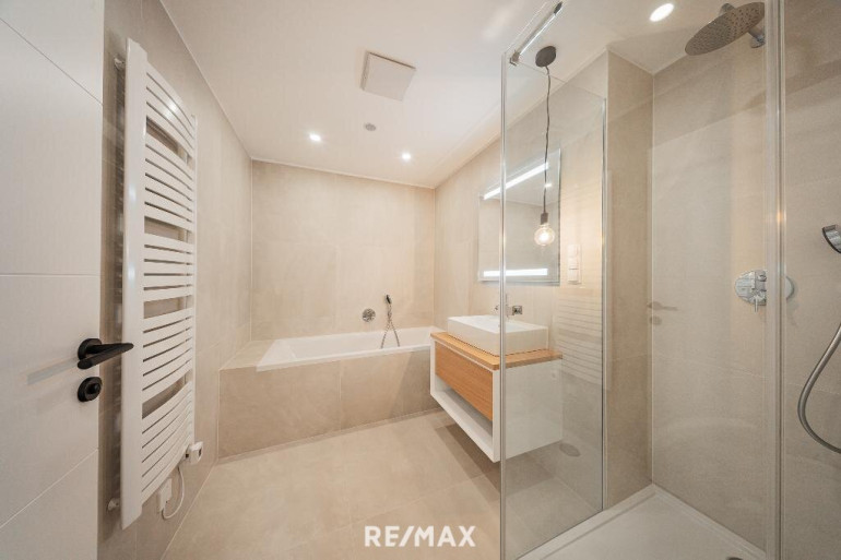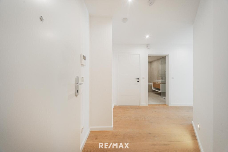 Die Wohnungen bieten hochwertige Materialien wie Eichenholzparkett, Smart-Home-Steuerung und Klimaanlage. Dachgeschosswohnungen sind zusätzlich mit Fußbodenheizung ausgestattet. Energiesparende Fenster mit 2-fach-Verglasung gewährleisten Komfort und Effizienz. Die modernen Bäder verfügen über Markensanitärprodukte, und große Fensterfronten in den Dachgeschosswohnungen sorgen für viel Tageslicht.