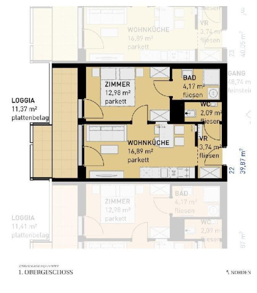 Sollten Sie mehr Platz benötigen, planen wir auch gerne eine größere Wohnung (zB eine 4-Zimmer-Wohnung anstelle von zwei nebeneinander liegenden 2-Zimmer-Wohnungen) für Sie. Fragen Sie einfach bei unserem Vertrieb nach!