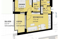 Das Wohnbauprojekt fügt sich mit seinen 80 provisionsfreien frei finanzierten Eigentumswohnungen und 37 PKW-Tiefgaragenstellplätzen perfekt in die Umgebung ein. Die durchdachten Raumaufteilungen der 2- und 3- Zimmer-Wohnungen mit 34m² bis 87m², decken alle Bedürfnisse ab. Die jeweiligen Freiflächen, wie Loggia, Balkon, Terrasse oder Eigengarten, bieten privaten Platz im Freien.