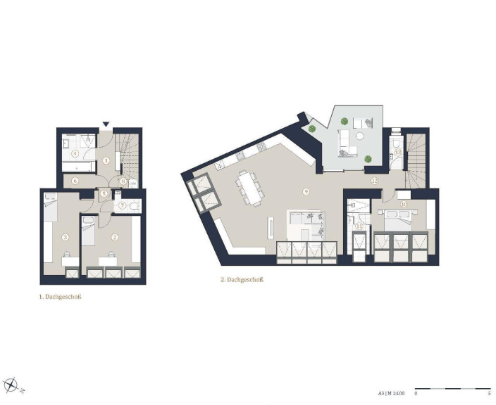 Wohnflächen mit ca. 72 m² bis 124 m²