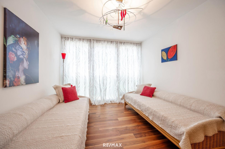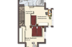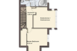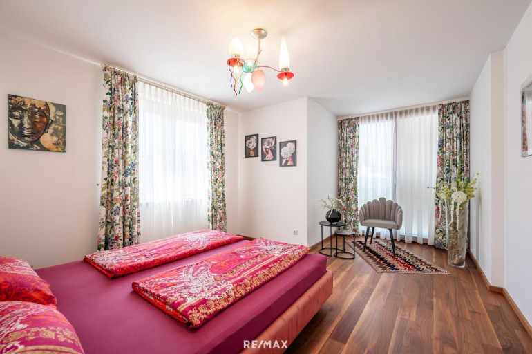 Das Obergeschoss erreicht man über eine schöne Vollholztreppe - das OG bietet neben 2 sehr großzügigen Schlafzimmern, auch ein Badezimmer mit Dusche und Eckbadewanne, sowie ein 2tes privates WC. Der Masterbedroom ist mit 20m² angemessen groß, die begehbare Garderobe ist räumlich abgetrennt und über eine Türe zu begehen. Das 2te Zimmer kann als Arbeitszimmer oder Kinderzimmer verwendet werden und ist - weil auch richtig Süden orientiert - freundlich hell und lichtdurchflutet. Das Angebot rundet zusätzlich ein riesiger ca. 150m² großer Allgemein-Garten, sowie ein großer Garagenplatz sowie ein trockenes Kellerabteil, im Eigentum, ab.