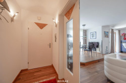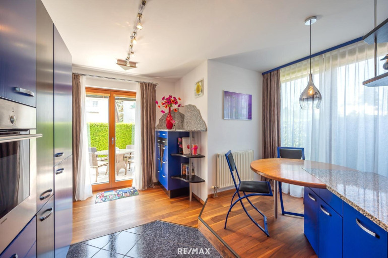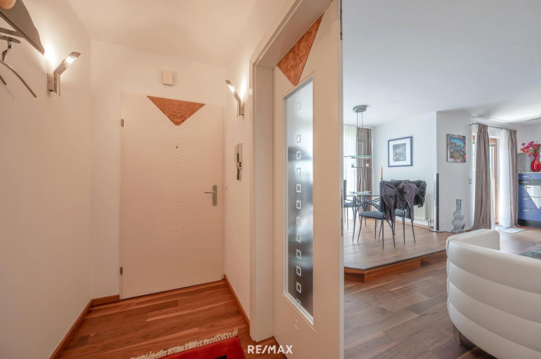 Die ca. 98m² große 3 Zimmer Wohnung ist nahezu perfekt aufgeteilt - im 5m² großen Vorzimmer findet man neben einer netten Garderobe, genug Stauraum für Schuhe, Taschen, Jacken und Co. Das Gäste WC mit Handwaschbecken ist ca. 1,56m² groß und liegt gleich neben an. Vom Vorzimmer aus gelangt man in den großzügigen Wohn- / Esszimmer / Küchenbereich der ca. 42m² misst. Der Essbereich ist auf einem Podest vom Rest des Raumes optisch elegant abgetrennt - sowohl Küche, als auch Ess- / Wohnbereich sind durch die Südlage hell & lichtdurchflutet, trotzdem ist durch die gepflegte Hecke die Privatsphäre geschützt.