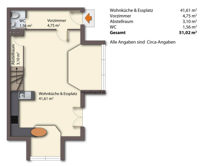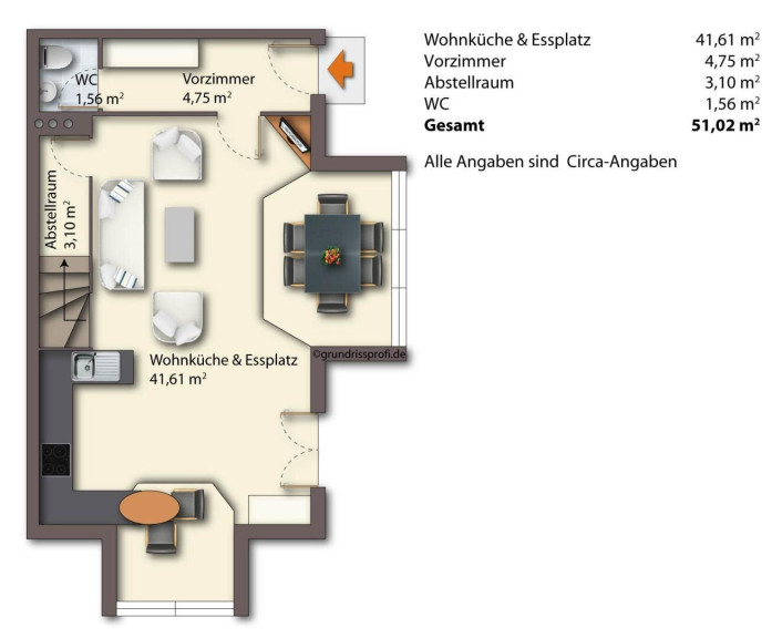 TTL ca. 51m² im EG, zzgl. ca. 50m² Eigen-Garten, davon ca. 18m² Terrasse