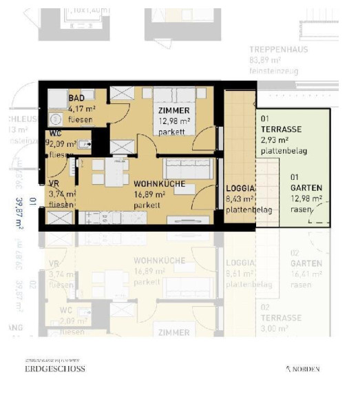 Sollten Sie mehr Platz benötigen, planen wir auch gerne eine größere Wohnung (zB eine 4-Zimmer-Wohnung anstelle von zwei nebeneinander liegenden 2-Zimmer-Wohnungen) für Sie. Fragen Sie einfach bei unserem Vertrieb nach!