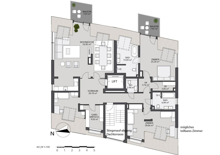 * Direkter Lift in die Wohnung und auf die Dachterrasse
