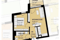 Alle Wohnungen werden schlüsselfertig übergeben, d.h. alle Sanitäranlagen, Fliesen und Parkettböden sind im Kaufpreis inkludiert. Die Heizung erfolgt mittels Fußbodenheizung, die Wärmeversorgung über eine energieschonende Luft-Wasser-Wärmepumpe.