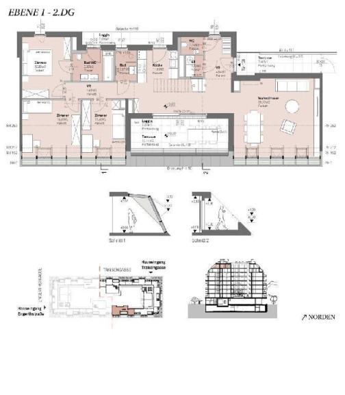 Die modernen 2-Zimmer-Wohnungen sind ideal für Singles und Paare. Mit 37 bis 45 m² vereinen sie einen offenen Wohn-/Essbereich, ein separates Schlafzimmer sowie Zugang zur Terrasse oder zum eigenen Garten. Höchsten Wohnkomfort bieten auch die Maisonette-, Garten- und Hofwohnungen mit 3 oder 4 Zimmern. Die Gartenwohnungen verfügen über private Grünflächen, während Hofwohnungen direkten Zugang zum begrünten Innenhof haben. Die Dachgeschoßwohnungen und Penthouses bieten luxuriöses Wohnen mit 43 bis 126 m² und 2 bis 4 Zimmern. Atemberaubende Ausblicke und ein begehrter Rückzugsort im Herzen der Stadt zeichnen diese Einheiten aus.
