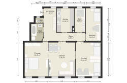 Es sind gesamt 4,5 Zimmer mit großzügigem Vorraum, 3 sehr großen Zimmern, 1 wie vor beschriebenes zum eventuellen zusammenlegen mit dem Nebenzimmer oder 2 kleinere Räume lassen (je nachdem wie Sie es nutzen wollen), Bad, WC und Abstellraum, der entweder bleibt oder der Zusammenlegung dient. Die Nutzung jetzt ist anders angelegt, als auf dem Urplan zu sehen.