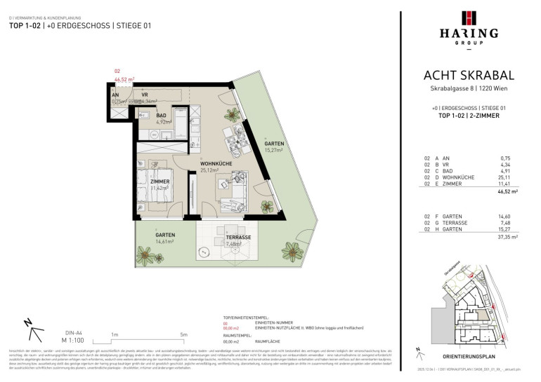 Im Wohnbauprojekt ACHT SKRABAL in der Skrabalgasse 8, 1220 Wien entstehen 33 moderne Eigentums- und Vorsorgewohnungen mit 2–4 Zimmern und Wohnflächen von 39 bis 93 m², jeweils mit einer privaten Freifläche – Balkon, Terrasse oder Garten.