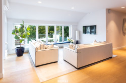 Alle drei Wohnbereiche sind durch die Terrasse verbunden – eine architektonisch reizvolle Lösung, die Licht, Luft und Freiraum in den Mittelpunkt stellt.