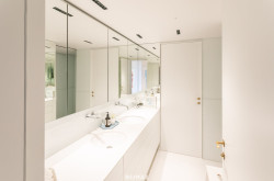 Auf der rechten Seite des Wohnbereichs befinden sich das Hauptschlafzimmer mit Bad und ein weiteres Zimmer; links zwei zusätzliche Schlafzimmer, ein weiteres Bad sowie die Küche.