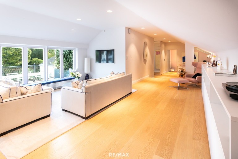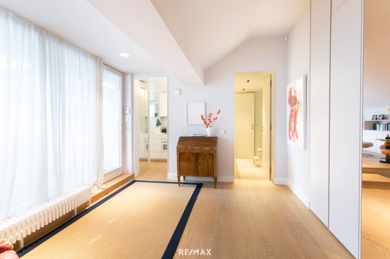Die rund 197 m² große Wohnung erstreckt sich über das gesamte oberste Geschoß eines charmanten Biedermeierhauses und verbindet stilvolle Architektur mit höchstem Wohnkomfort.