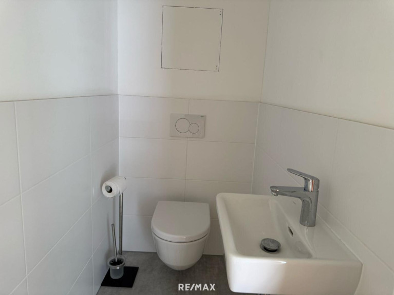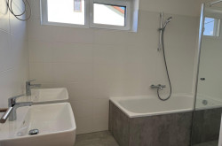• Großformatige Feinsteinzeugfliesen (60x60 cm) in Bad & WC