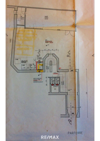 Eine Verbindung wäre prinzipiell möglich, wurde aber bislang noch nicht hergestellt. Büro/Wohnung ca. 40 m² groß. Mit Küche und WC.
