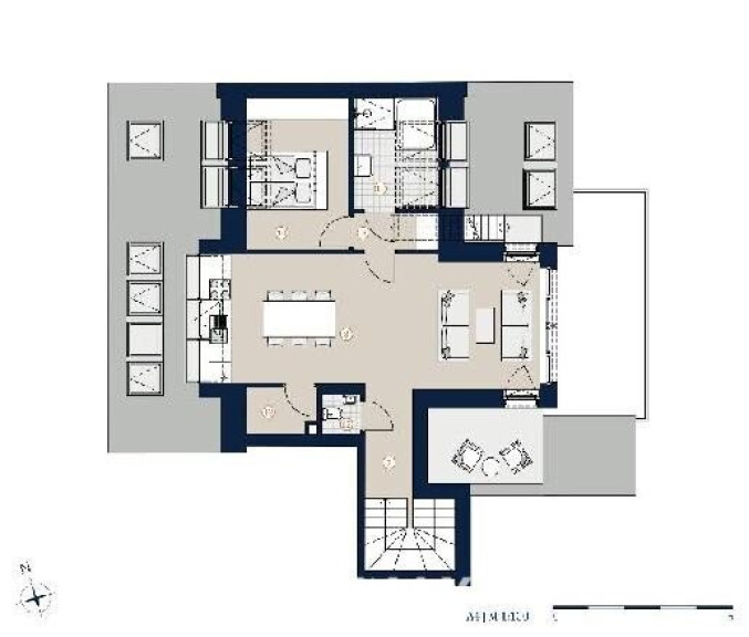 Diese traumhafte Penthouse besitzt eine Größe von knapp 114 m² Wohnfläche, als auch eine Terrasse auf der Wohnebene und eine Dachterrasse mit 360° Rundumblick! Die Aufteilung ist wie folgt: