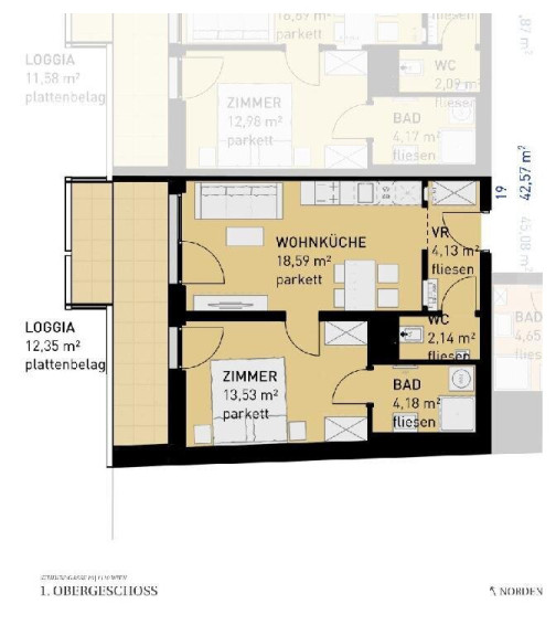 | Wohnfläche: | 42,57 m² |