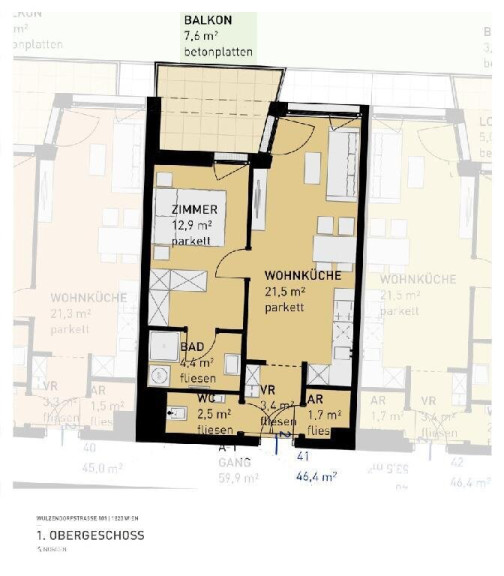 Das Wohnbauprojekt fügt sich mit seinen 80 provisionsfreien frei finanzierten Eigentumswohnungen und 37 PKW-Tiefgaragenstellplätzen perfekt in die Umgebung ein. Die durchdachten Raumaufteilungen der 2- und 3- Zimmer-Wohnungen mit 34m² bis 87m², decken alle Bedürfnisse ab. Die jeweiligen Freiflächen, wie Loggia, Balkon, Terrasse oder Eigengarten, bieten privaten Platz im Freien.
