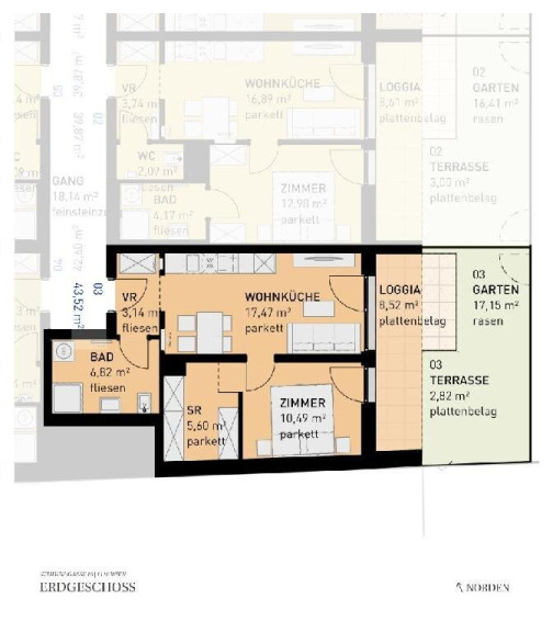 Sollten Sie mehr Platz benötigen, planen wir auch gerne eine größere Wohnung (zB eine 4-Zimmer-Wohnung anstelle von zwei nebeneinander liegenden 2-Zimmer-Wohnungen) für Sie. Fragen Sie einfach bei unserem Vertrieb nach!