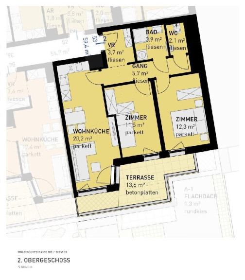 Das Wohnbauprojekt fügt sich mit seinen 80 provisionsfreien frei finanzierten Eigentumswohnungen und 37 PKW-Tiefgaragenstellplätzen perfekt in die Umgebung ein. Die durchdachten Raumaufteilungen der 2- und 3- Zimmer-Wohnungen mit 34m² bis 87m², decken alle Bedürfnisse ab. Die jeweiligen Freiflächen, wie Loggia, Balkon, Terrasse oder Eigengarten, bieten privaten Platz im Freien.