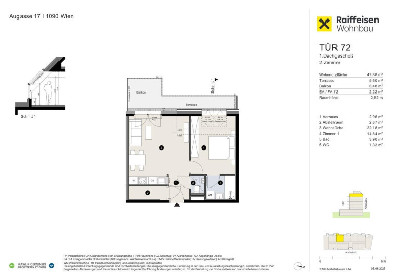 In ausgezeichneter Lage in der Augasse, 1090 Wien, entsteht ein begehrtes, hochwertiges Neubauprojekt mit 81 modernen Wohnungen – ideal sowohl für Eigennutzer als auch für Investoren/Anleger. Gegenüber des Projekts wird der neue Campus Althangrund (Universitätscampus) realisiert, was die Lage zusätzlich aufwertet und langfristig für eine hohe Nachfrage sorgt.