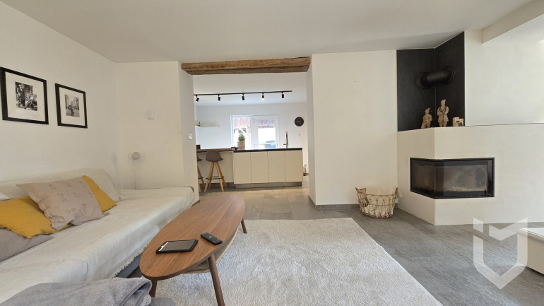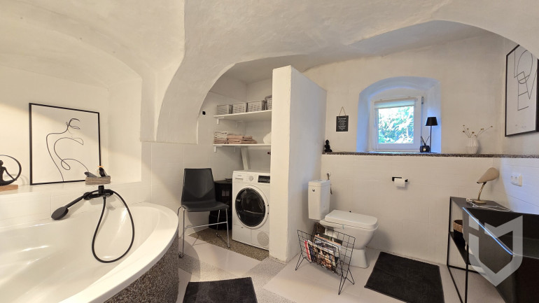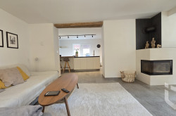 Parkett, Fliesen, Steinboden, Gas, Kamin, Wohnküche / offene Küche, Bad mit Fenster, Badewanne, Dusche