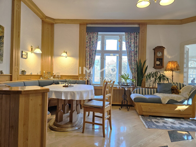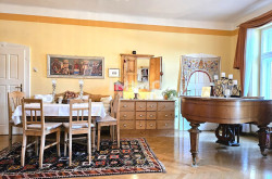 Die eindrucksvolle Villa präsentiert sich in einem sehr gepflegten Zustand und ist für unzählige Wohnkonzepte geeignet. Schon beim Betreten spürt man den besonderen Charakter dieses historischen Objekts. Großzügige und lichtdurchflutete hohe Wohnräume im Erdgeschoss und das ausgebaute Dachgeschoss werden sowohl repräsentativen als auch familiären Ansprüchen gerecht. Mit gesamt 14 Zimmern inkl. zweier Turmzimmer besteht Vielseitigkeit und Wohnnutzen auf höchstem Niveau. Alle Räume wurden über Jahrzehnte mit viel Liebe und Gefühl für die historische Substanz saniert und möbliert. Viele der Möbel können je nach Bedarf übernommen werden.