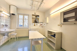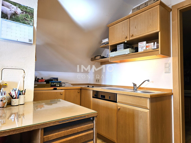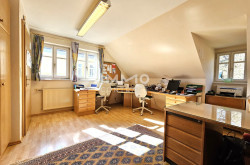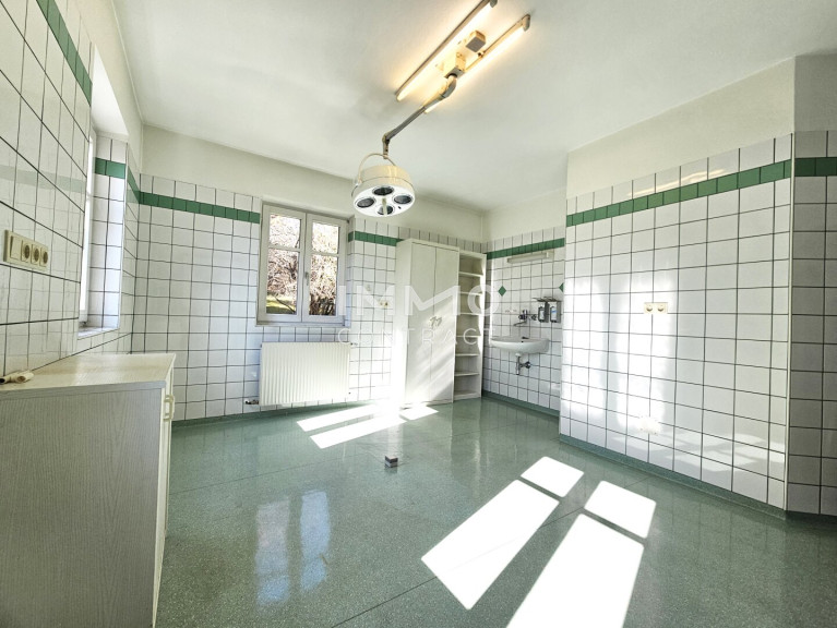 Im Jahr 1993 wurde der letzte Zubau errichtet und dadurch eine vollwertige Tierarzt-Ordination mit darüberliegenden Büroräumen geschaffen. Durch das vorhandene Bad und die Kochnische im DG sowie einen Kamin, könnte dieser Zubau auch als separate großzügige Wohneinheit, als eigenständiges Büro oder wieder als Ordination genutzt werden. Der im Keller befindliche Lagerraum mit ca. 40 m² schafft weitere gewerblich oder privat nutzbare Perspektiven. Ebenso sind ostseitig gegenüber der Straße ausreichend Parkplätze vorhanden.