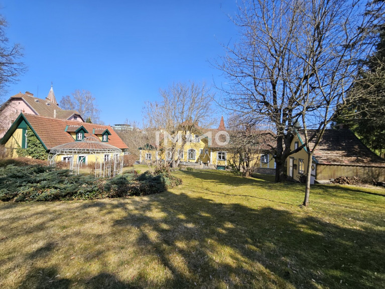 Die 2137 m² große Liegenschaft umfasst neben dem Hauptgebäude, vier Nebengebäuden und zusätzliche Stellmöglichkeiten für ein bis zwei PKW. Der nach Westen ansteigenden Garten mit einer Gesamtfläche von 1714 m² präsentiert sich in einer parkähnlichen Struktur mit einem Holzgartenhaus aus dem Jahr 1913. Der Blick in den Garten kann von der ca. 45 m² großen südwestseitig ausgerichteten Terrasse oder im Winter vom Terrassenzimmer des Hauses genossen werden.