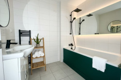 Parkett, Fliesen, Kunststoffboden, Zentralheizung, Fernwärme, Badewanne
