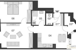 Man betritt diese Wohnung über einen Vorraum und gelangt unmittelbar in die helle offene Wohnküche mit Zugang zum Abstellraum sowie zur separaten Toilette. Vom Wohn-Ess-Bereich erreicht man das gemütliche Wohnzimmer und das Schlafzimmer sowie das geräumige Duschbad.