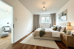 Das großzügige Schlafzimmer rundet das Raumangebot ab und bietet ausreichend Platz für erholsame Nächte und individuelle Gestaltungsmöglichkeiten.