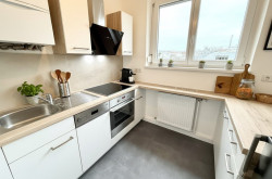 Der Innenbereich überzeugt durch eine gelungene Kombination aus Funktionalität und Wohnkomfort. Ein hochwertiger, neuer Parkettboden sorgt für eine warme und einladende Atmosphäre. Die separat gelegene Küche ist vollständig ausgestattet und bietet mit Backofen, Induktionskochfeld, Kühl-Gefrierkombination, Geschirrspüler, Dunstabzug sowie großzügigen Ober- und Unterschränken alles, was Sie im Alltag benötigen.
