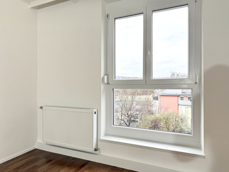 Ein weiterer Pluspunkt ist die nordseitige Ausrichtung: Selbst an heißen Sommertagen bleibt die Wohnung angenehm kühl. Moderne Fenster und ein außenliegender Sonnenschutz unterstützen zusätzlich ein ausgeglichenes Raumklima.