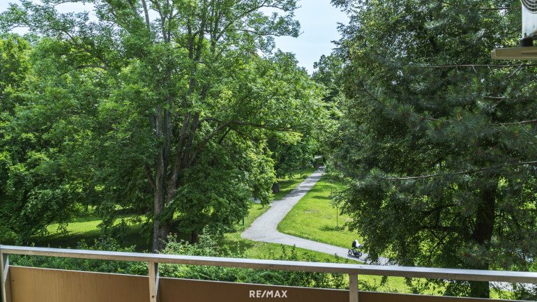 Die Loggia ist der perfekte Ort, um den Tag mit einem guten Buch und einer Tasse Kaffee zu beginnen oder um den Abend mit einem Glas Wein ausklingen zu lassen und dabei den Blick auf den umliegenden Park zu genießen.