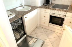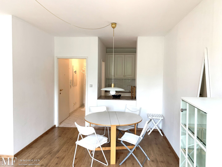 Eine möblierte kleine Küche steht zur Verfügung.