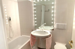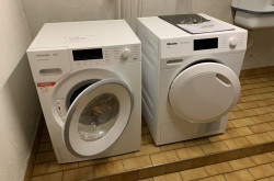 Das Badezimmer ist mit Wanne ausgestattet. Im Haus gibt es eine Waschküche mit Trockner.
