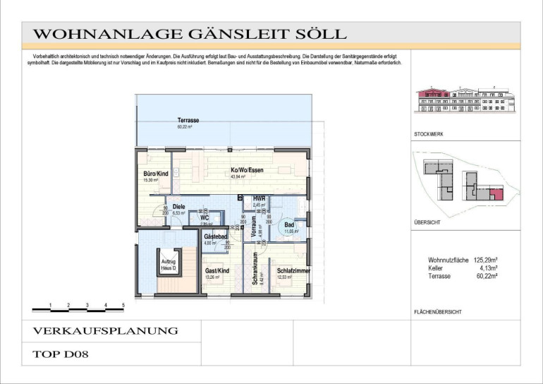 Mit einer Wohnnutzfläche von rund 125,26 m² sowie einer beeindruckenden Terrasse mit rund 60 m² eröffnet diese Penthousewohnung großzügige Wohnräume und atemberaubende Ausblicke auf die Tiroler Bergwelt