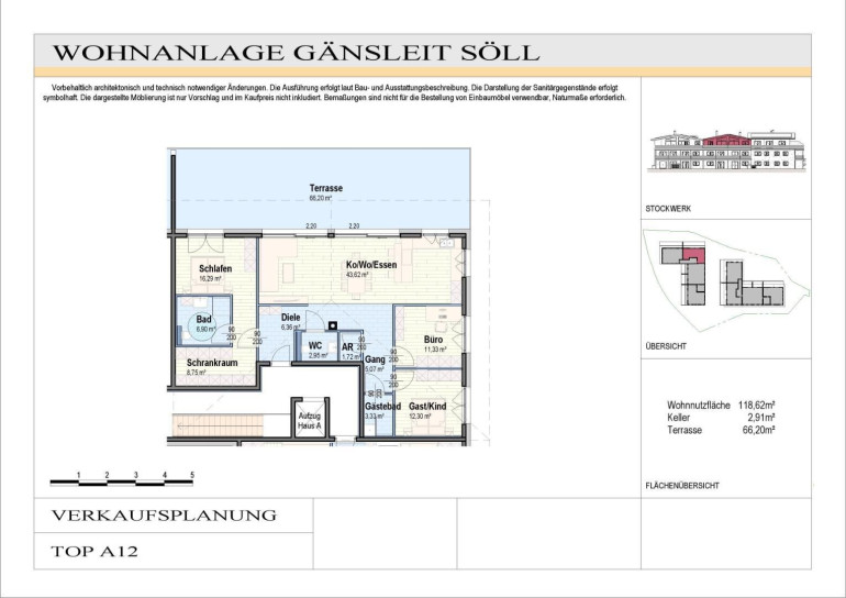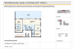 Die Penthousewohnung Top A12 besticht durch ihren großzügigen Wohn- und Essbereich (ca. 43,6 m²), ein Hauptschlafzimmer mit eigenem Bad und Schrankraum, ein Gäste- oder Kinderzimmer, ein Büro, ein separates Gäste-Bad sowie praktische Nebenräume wie Diele, WC und Hauswirtschaftsraum.