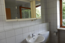 Die 6 Parteien in diesem Mehrparteienhaus teilen sich im Keller einen Raum für Fahrräder und einen Trockenraum für Wäsche.