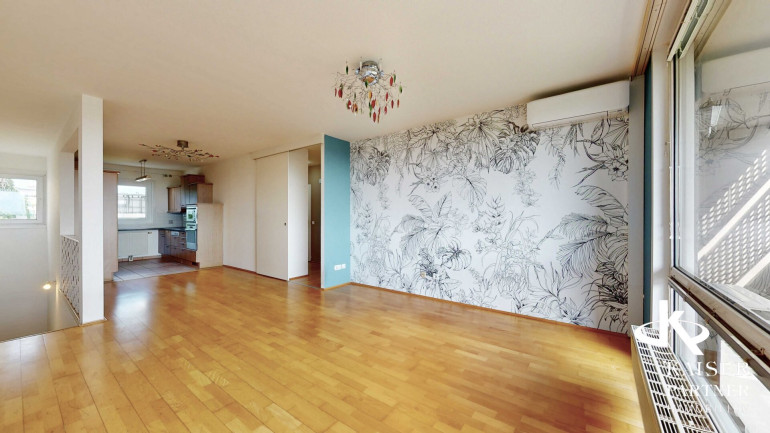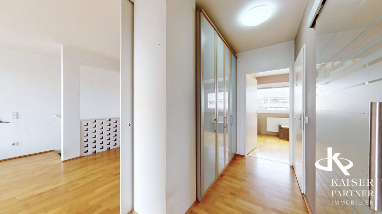Mit einer großzügigen Fläche von 72,5 m² verteilt auf drei lichtdurchflutete Zimmer, ist diese Wohnung ideal für Singles, Paare oder kleine Familien. Sie befindet sich im 2. Liftstock einer gepflegten Wohnhausanlage mit viel Grünfläche. Die Wohnung hat 2 Ebenen, auf der unteren Ebene befindet sich ein großzüger Vorraum mit zeitlosen weißen Verbauten, die viel Stauraum bieten, alle weiteren Räume sind auf der 2. Ebene, die 12,5m² große Loggia, spannt sich über gesamte Wohnungsbreite.