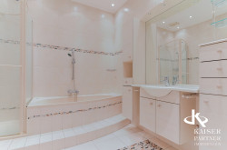 In addition to stucco ceilings and stylish doors, the apartment features a furnished kitchen, including a dining area. For the highest comfort, there is a bathroom with a bathtub and a separate bathroom with a shower. A private closet and a storage room complete the space offered.